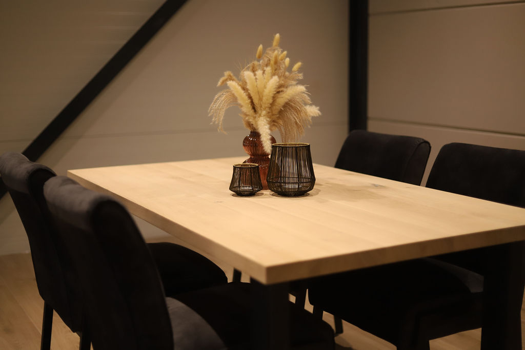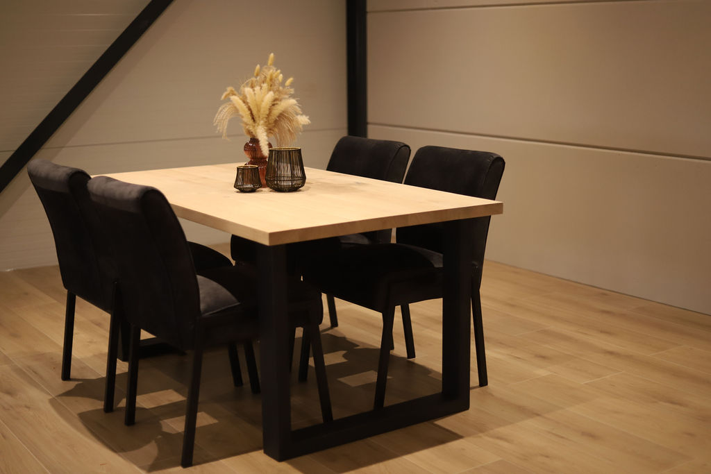 In onze eigen werkplaats werken we elke tafel volledig op maat af. Je kunt kiezen uit diverse kleuren, en lakafwerkingen zodat de tafel precies aansluit bij jouw woonstijl.