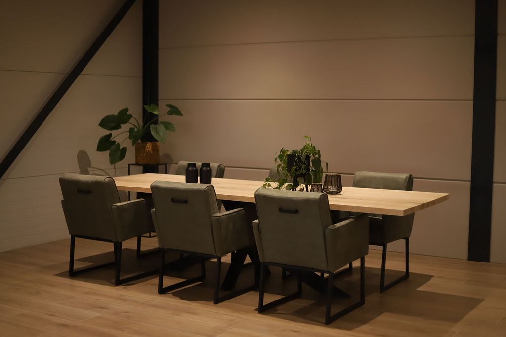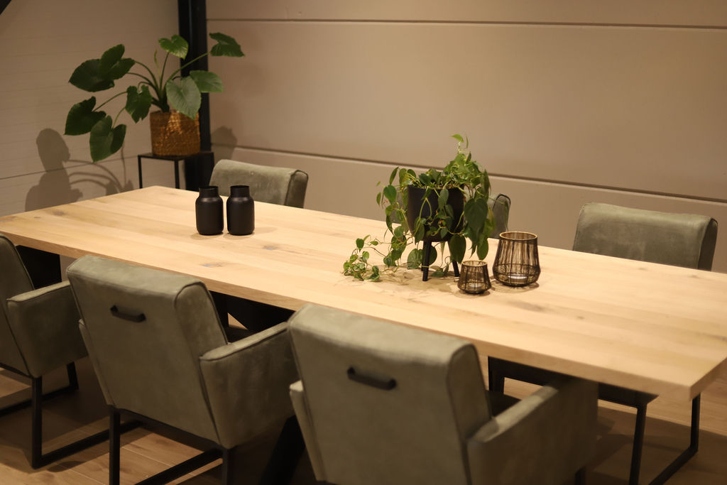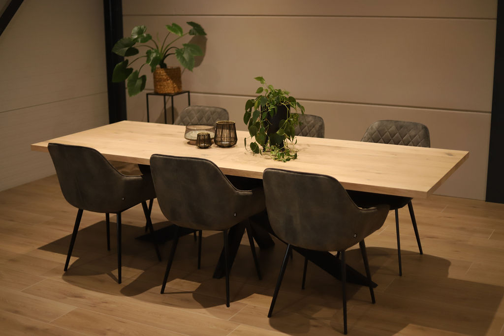 Topkwaliteit eiken eettafels tegen groothandels prijzen? Die vind je bij CrownTable! Deze rechthoekige eiken eettafel is vervaardigt uit hoogwaardig Europees eikenhout en kenmerkt zich door de rijke, natuurlijke houtstructuur en warme uitstraling. In onze werkplaats werken we de tafel naar wens af in diverse kleuren en voorzien we het blad van een sterke, beschermende lak voor optimaal behoud en dagelijks gebruik.