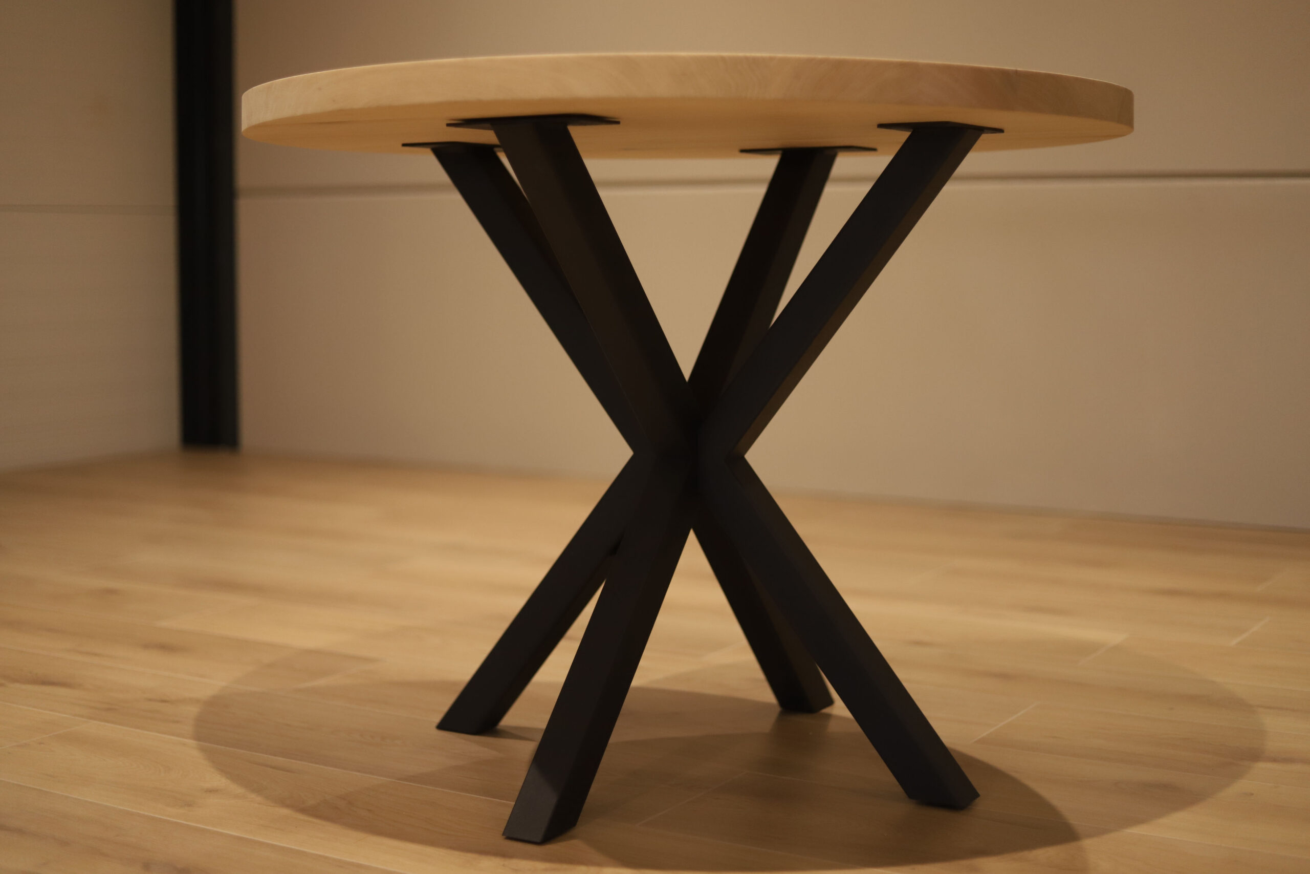 Het zwarte stalen spinpoot-onderstel geeft de tafel een stijlvolle industriële touch én biedt optimale beenruimte rondom. In onze eigen werkplaats werken we elke tafel volledig op maat af. Je kunt kiezen uit diverse kleuren, olie- en lakafwerkingen zodat de tafel precies aansluit bij jouw woonstijl.